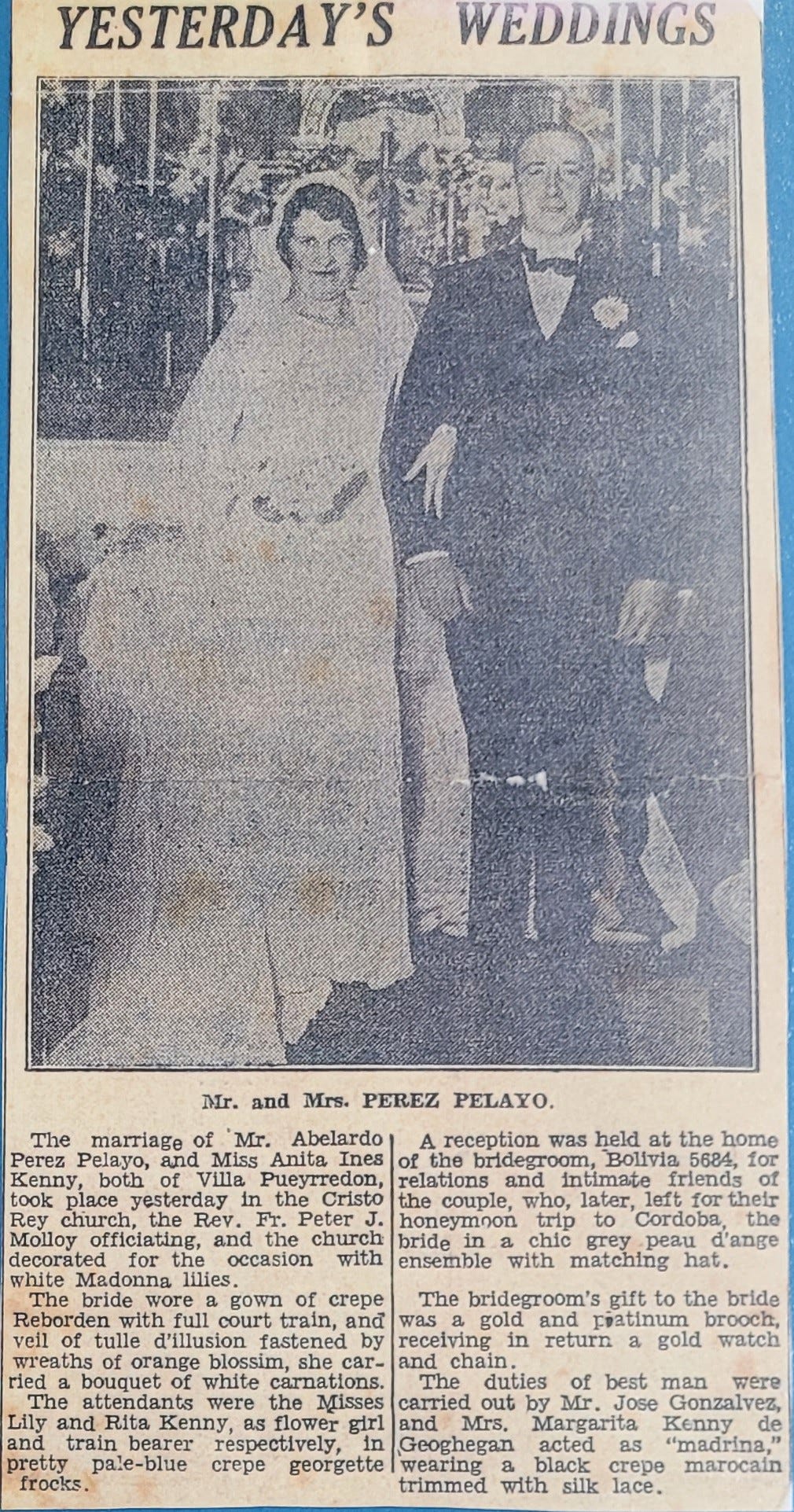 Para sorpresa de nadie, su madre tampoco estuvo de acuerdo con el compromiso. Pero esta vez a Ana no le importó que Abelardo era español y que Cissie siguiera soltera3. Se casaron en diciembre de 1933 y por supuesto que su foto salió publicada en el diario de la comunidad irlandesa de Buenos Aires:
